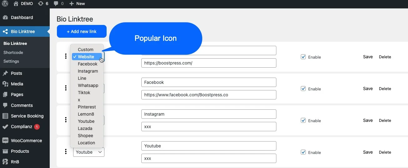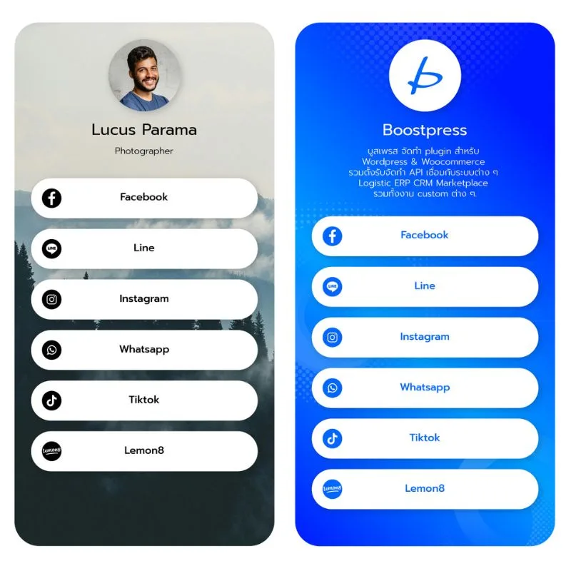 • Chat Button Functionality: Besides being a page link to share, Boostpress Biolink can also be used as a chat button, allowing customers to easily choose how to contact you.