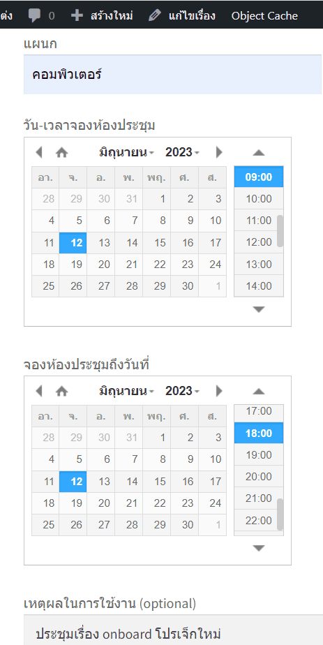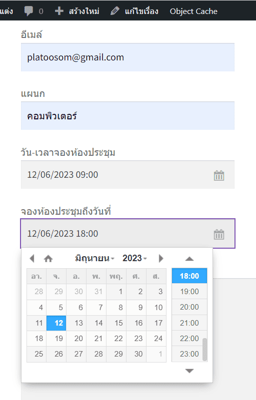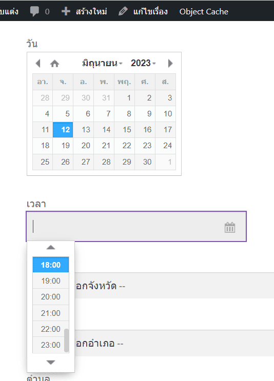 - แสดงตัวเลือก DateTime Picker