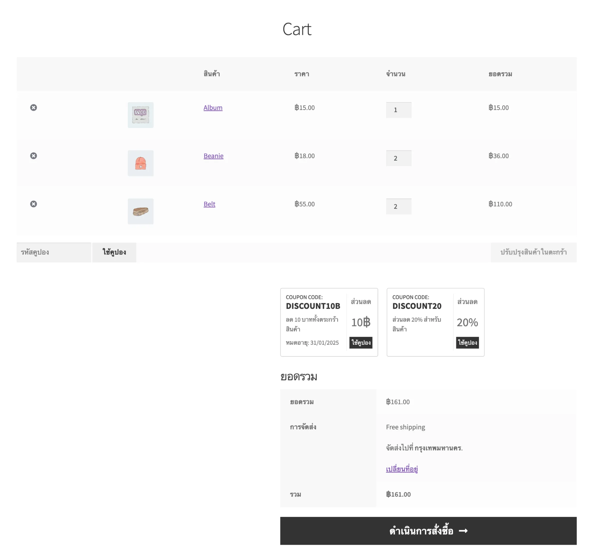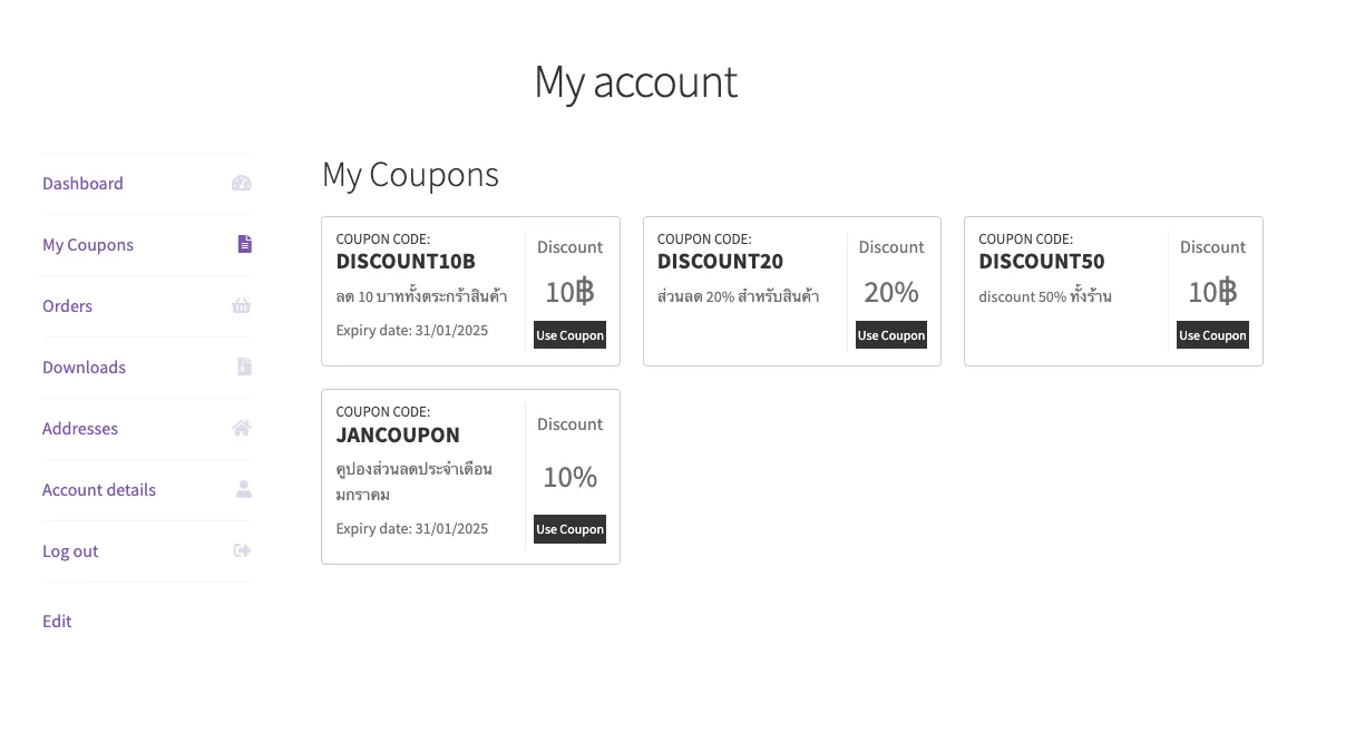 - แสดงคูปองอัตโนมัติ: คูปองจะปรากฏในหน้าที่กำหนดโดยอัตโนมัติ เช่น หน้าชำระเงิน (Checkout) หรือหน้ารายการสินค้า