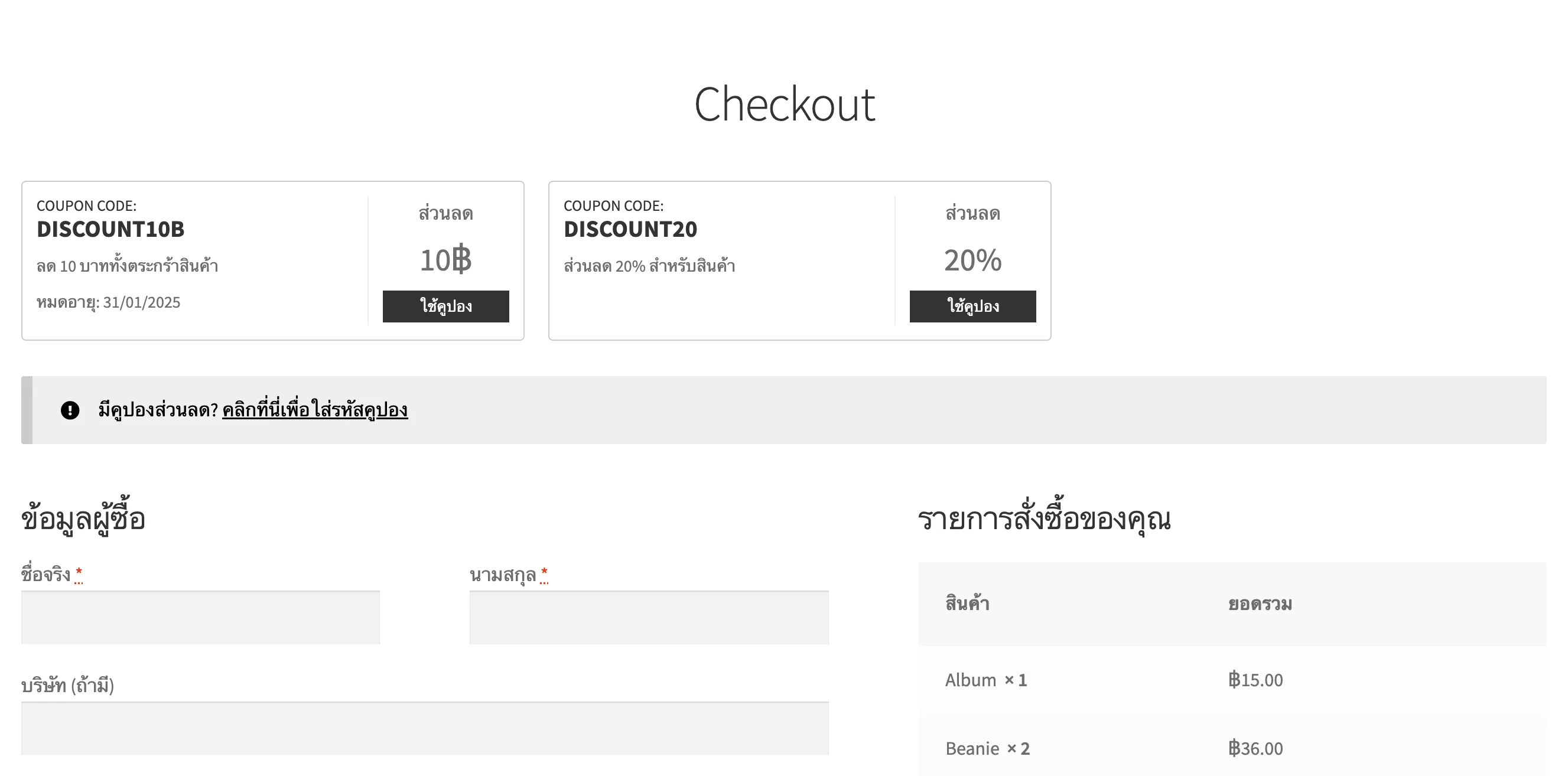 Coupon collector บนหน้า checkout