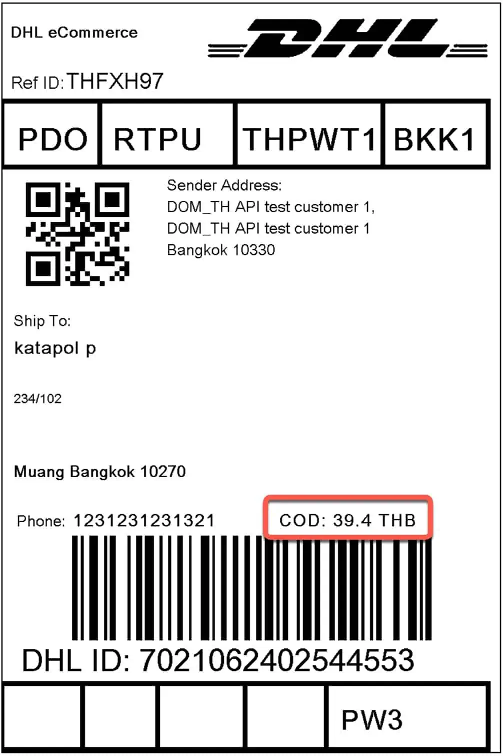DHL Shipping Label (รวมเก็บเงินปลายทาง COD))