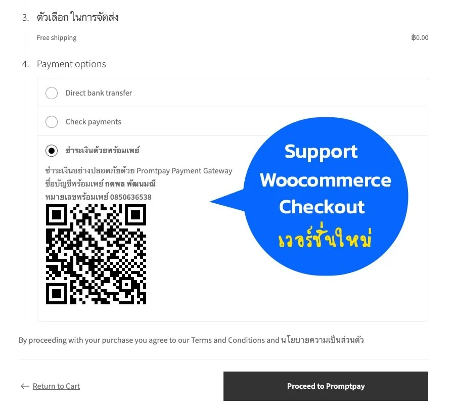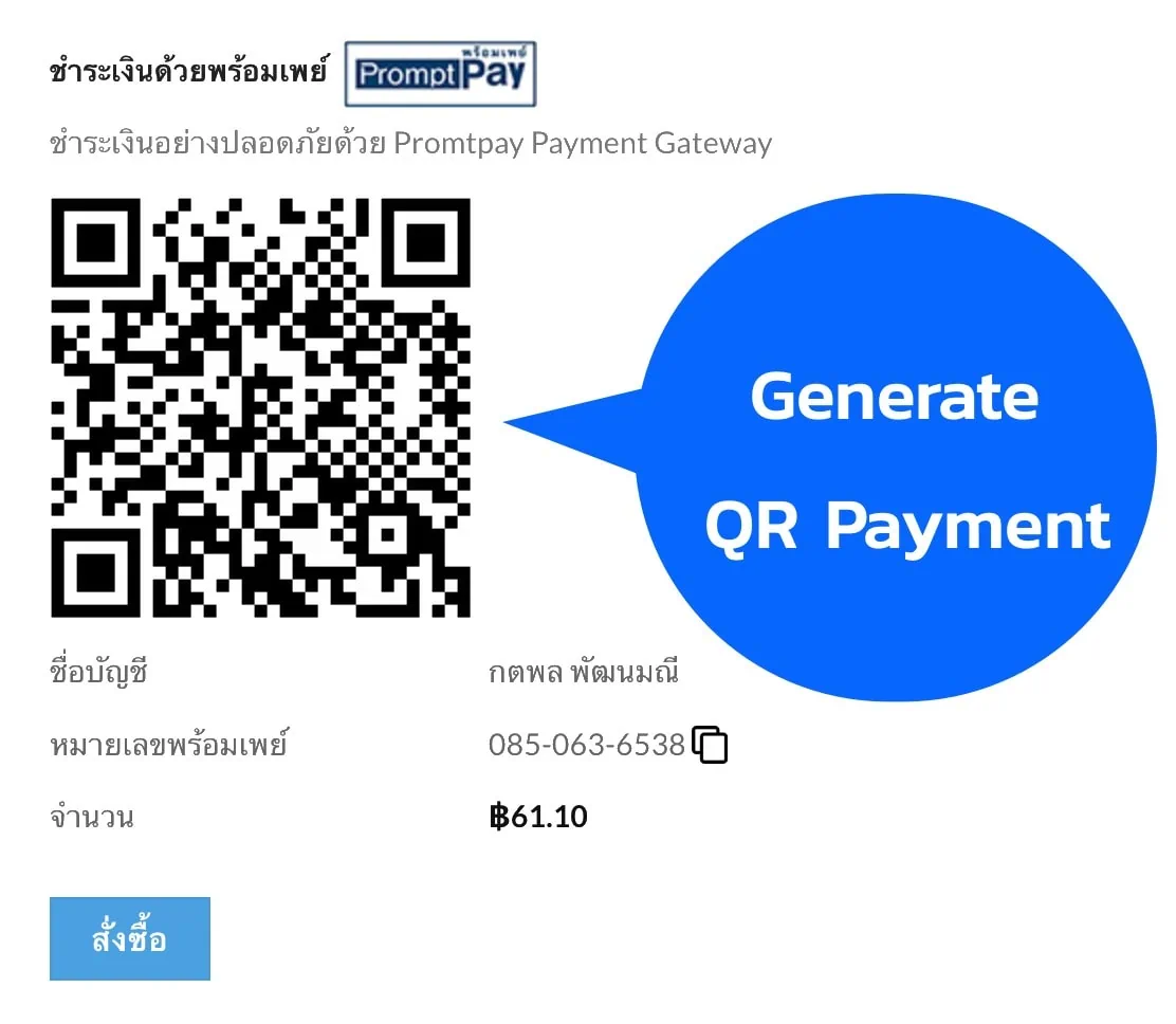 ปลั๊กอินชำระเงินผ่าน Promptpay เพิ่มความสะดวกในการชำระเงิน ให้กับลูกค้าของคุณ เพียงเลือก option promptpay หน้าชำระเงิน ระบบจะ generate Promptpay QR code เพื่อให้ลูกค้าแสกนและจ่ายเงินได้ทันที 🙂