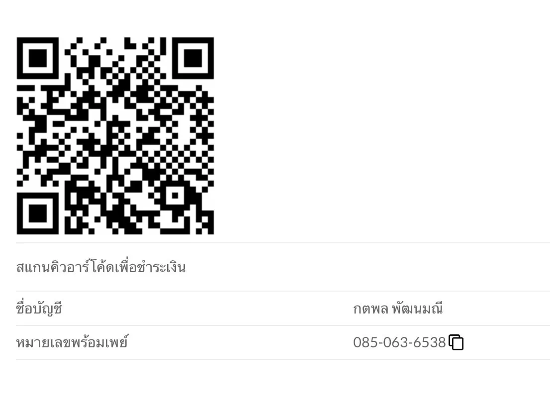 - สามารถ copy เลขที่บัญชี Promptpay ได้ง่ายเพียง click ที่ตัวเลข