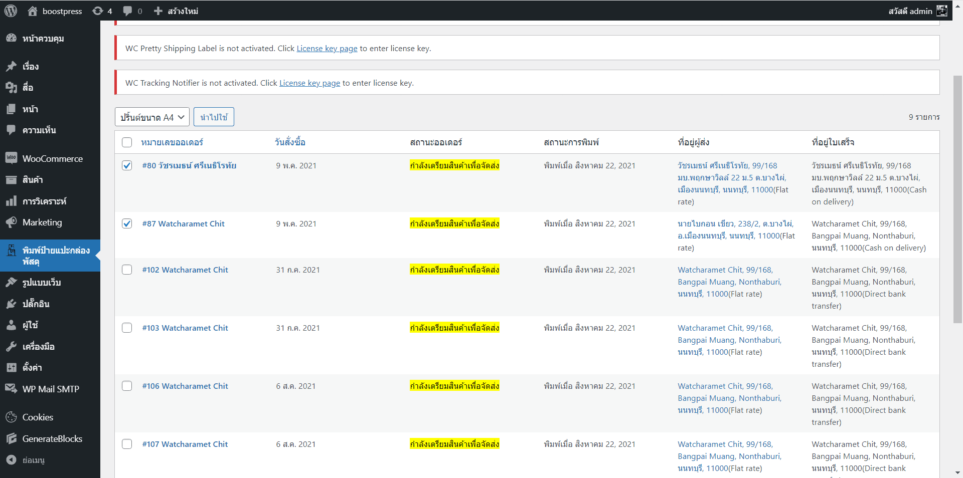 ปลั๊กอิน พิมพ์ใบปะหน้าพัสดุ สำหรับ woocommerce ตัวนี้เป็นปลักอินที่สร้างขึ้นเพื่ออำนวยความสะดวกให้กับแม่ค้าที่ต้องการปริ้นต์ใบแปะหน้ากล่องพัสดุ โดยตัวแม่ค้าสามารถเลือกได้ว่าจะปริ้นต์ใบแปะรายการสั่งซื้อสินค้ารายการใดบ้าง