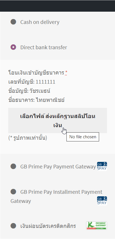 * ซัพพอร์ตการส่งภาพสลิปต์เข้าโปรแกรม Telegram (Require Boostpress Telegram Notification ซื้อได้ที่เว็บไซต์ boostpress.com เจ้าของเดียวกับปลักอิน WC BACS Extended Gateway)