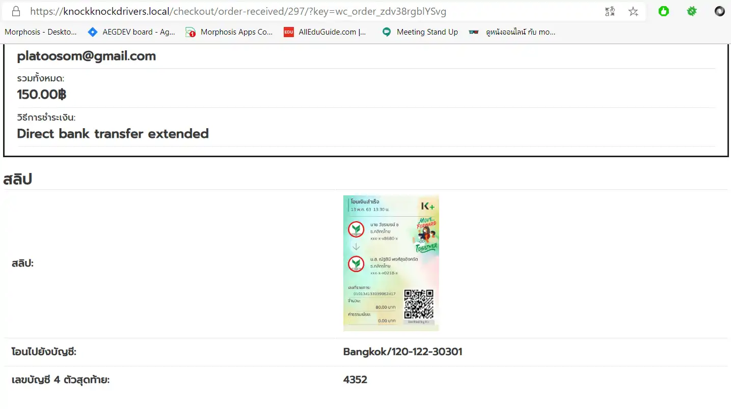 แสดงสลิปต์ที่หน้าสรุปยอดการสั่งซื้อ