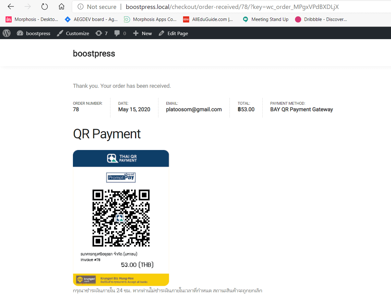 * มีแนบ QR ไปกับอีเมล์สั่งซื้อ
