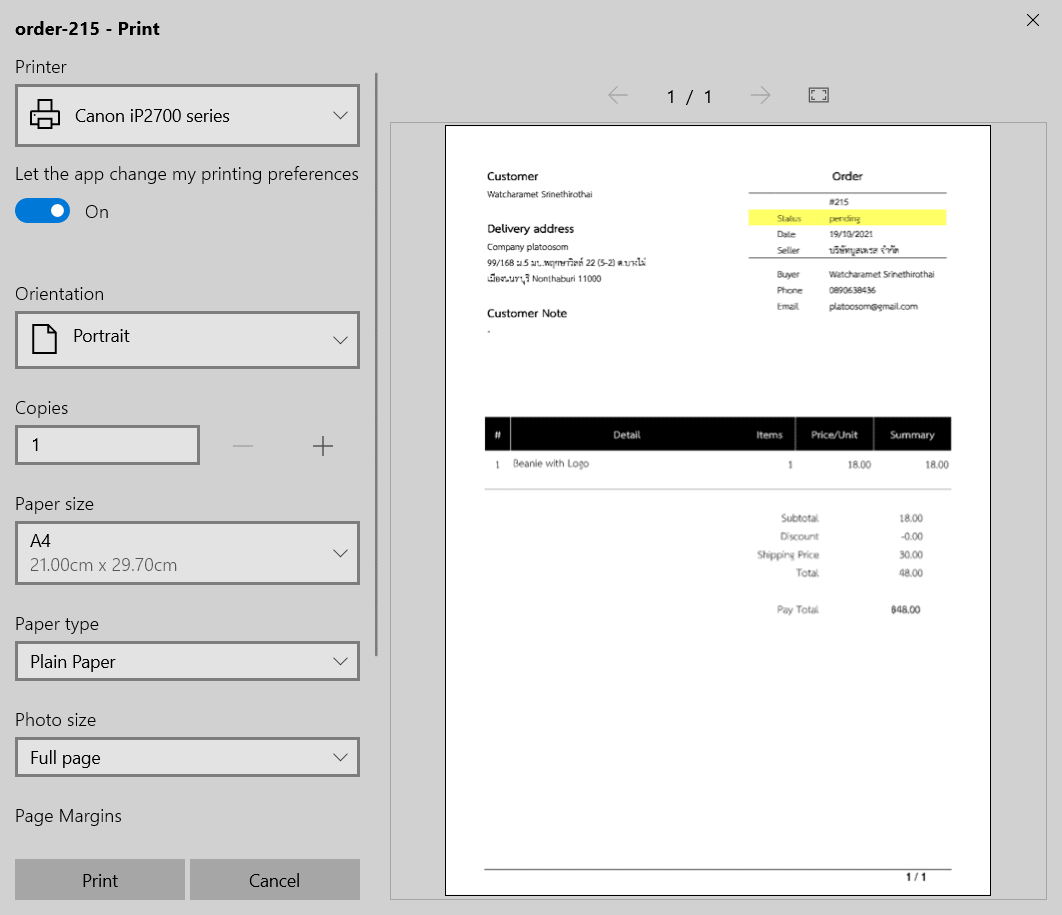 แนบไฟล์ pdf ออเดอร์ไปให้ในอีเมล์