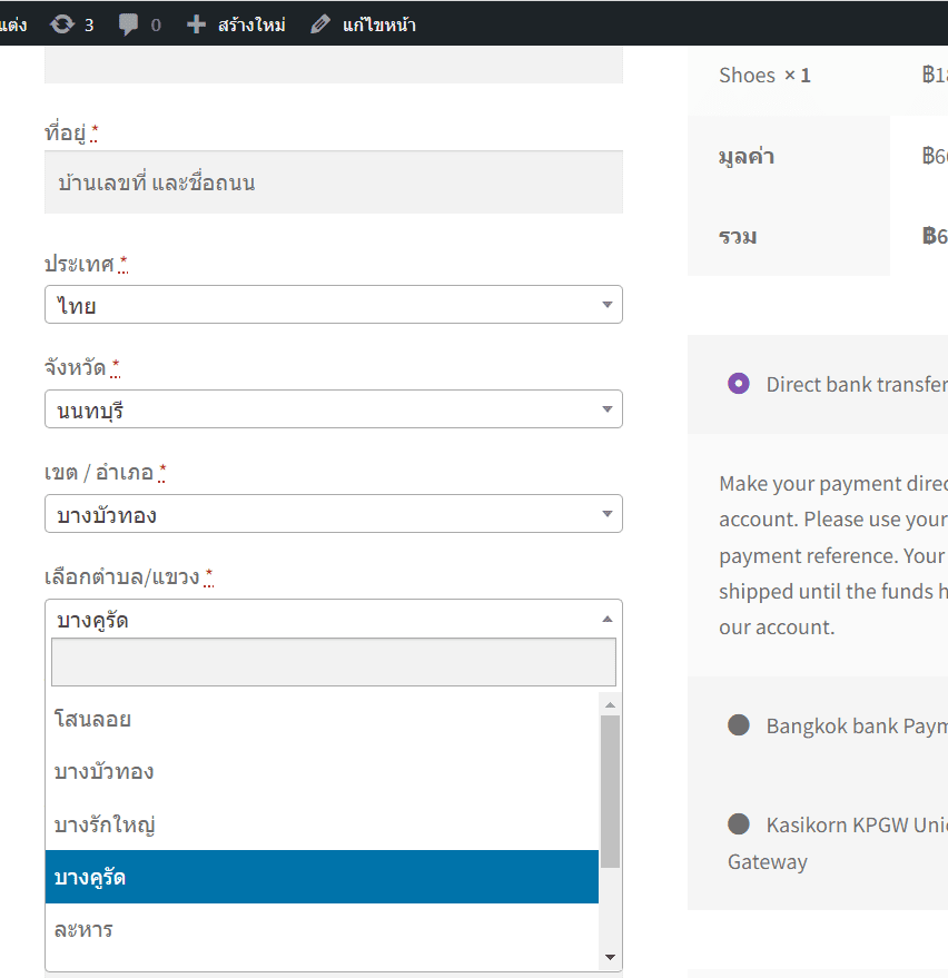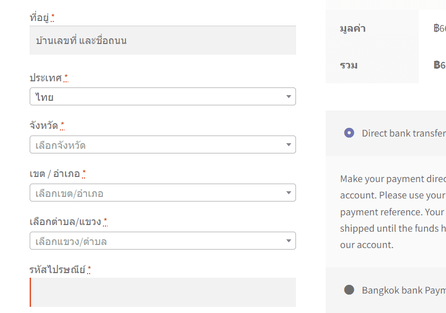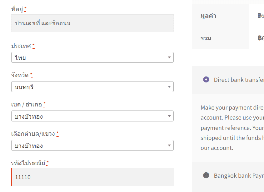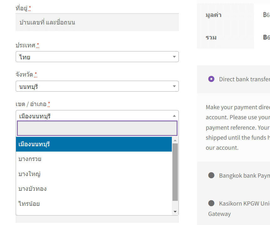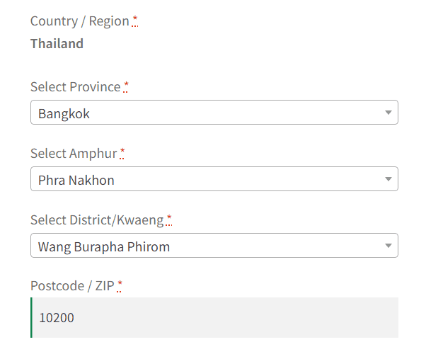 ปลั๊กอินช่วยกรอกที่อยู่ ตัวเลือกจังหวัด อำเภอ ตำบล รหัสไปรษณีย์